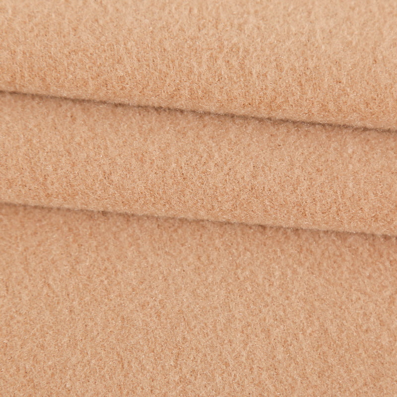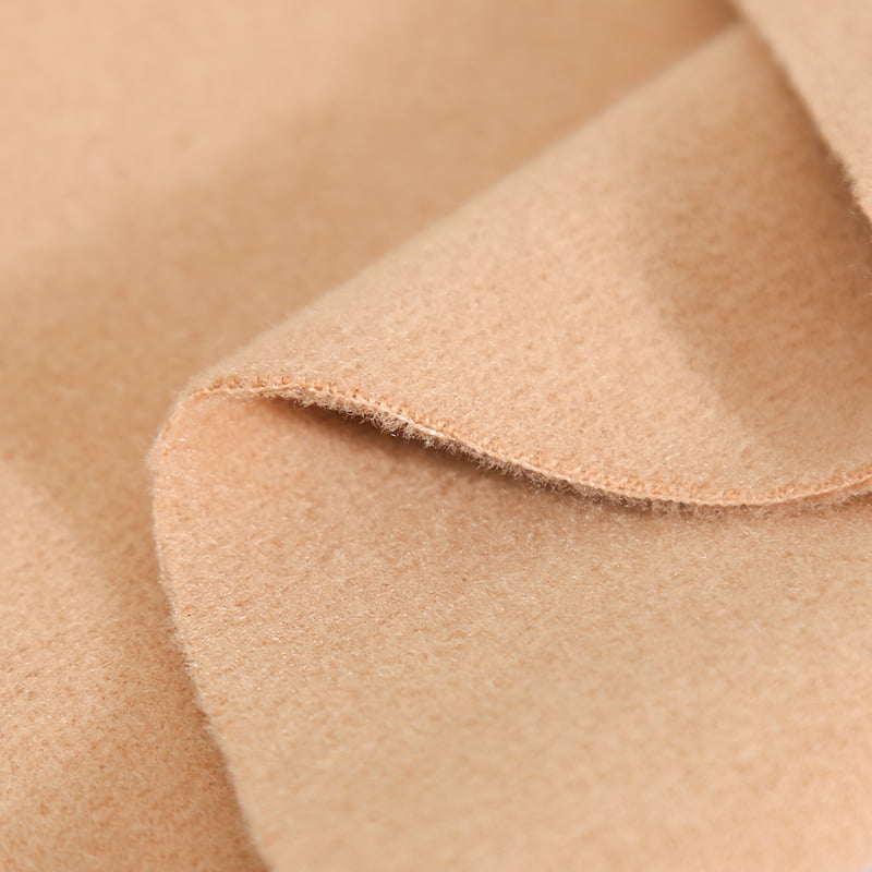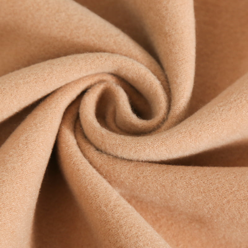 بالإضافة إلى الخصائص الثقيلة ، فإن تسليط الضوء على هذا النسيج هو تصميمه المصقول على الوجهين. في عملية إنتاج القماش ، يتم استخدام تقنية الفرشاة لسحب زغب جيد من الألياف السطحية ، وتشكيل سطح من جلد الغزال الناعم والكثيف. علاوة على ذلك ، يتم تفريغ هذا النسيج على الوجهين ، أي أن الجانبين الأمامي والخلفي قد تم تفريغهم ، مما يعني أنه بغض النظر عن الزاوية التي تنظر إليها ، فإن المعطف ينضح بريقًا ساحرًا وليخانًا. هذا التصميم لا يعزز فقط الاحتفاظ بالدفء للنسيج ، ولكنه يضيف أيضًا لمسة من الموضة والنبلاء إلى المعطف.